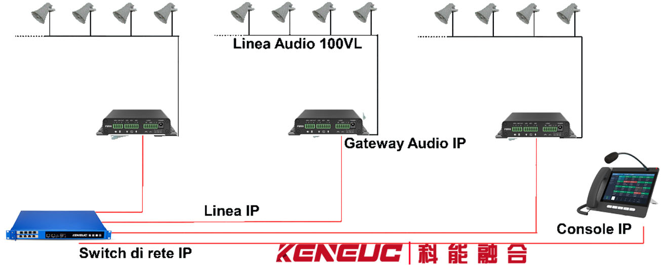 基于科能PAS设备的基于IP的公共广播系统的结构非常简单,因为它完全依赖于本地IP设备直接连接到数据网络,无需接口或中间单元。此外,使用点对点协议,系统不需要安装通信的服务器管理软件或任何其他类型的中央单元。系统中的每个设备独立管理与数据网络的连接并独立建立连接到任何其他设备。