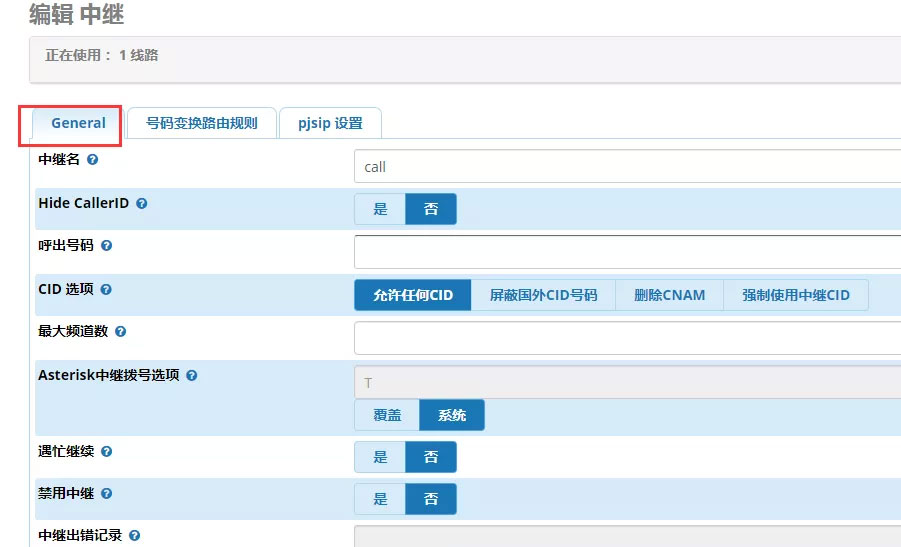 通讯接口连接->中继->添加中继->SIP(chan_pjsip)